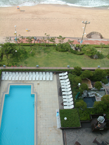 これは、先日泊まった釜山パラダイスホテルの客室ベランダから下を撮ったもの。