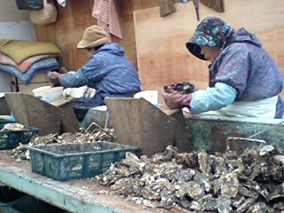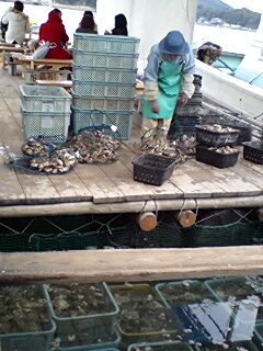 養殖場の隣ではおばちゃんたちがせっせと牡蠣を洗っていってくてれいます。産地偽装は有り得ないのが伝わってきますね。