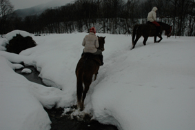 上記写真のような雪山を馬で散策、みたいな素敵な体験もできますよ。