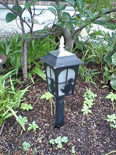 夜帰るといつも、太陽光発電でほんのりと足元を照らしてくれるミッキーの影。