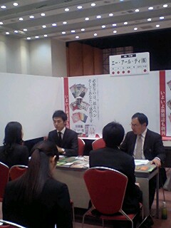 本日は、来年度の採用説明会を国際会議場で行ってきました。←写真は一瞬抜け出したすきに撮った、ぐっさんと編集長の奮闘風景。