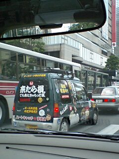街宣車…というより、普通の軽自動車なのですが、PR車としての役割は十分に果たしています。