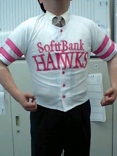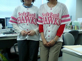 ←ホークスさんからいただいたピンクユニフォーム。本来、「女子高生DAY」に着られるものなのだそうですが、編集部では永遠の女子高生たちに着てもらいました。