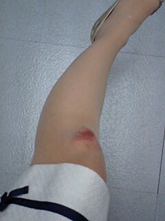 ←これ、写真ではいまいち悲惨さが伝わりませんが、ストッキングもビリビリで30代女とはとても思えないくらい、ひざから血が出ています。