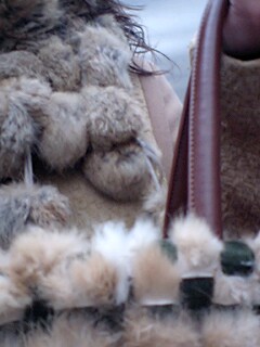 ファーのマフラーにファーのバッグ。