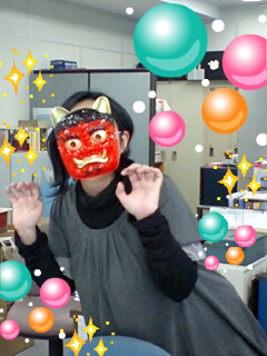 浮かれミカは自腹で鬼面を買ってきて、投げられる気マンマンで臨んでおりました。でも社内で豆を投げると後々掃除が大変なので、「福は内」は相当気を配って2〜3粒をパラパラとまいていたヘタレな私たち。