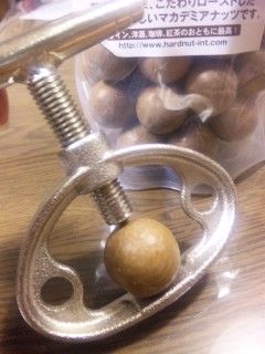 先日いただいた、殻つきマカデミアナッツ。ご丁寧に殻割器までついているのですが、これが楽しくて