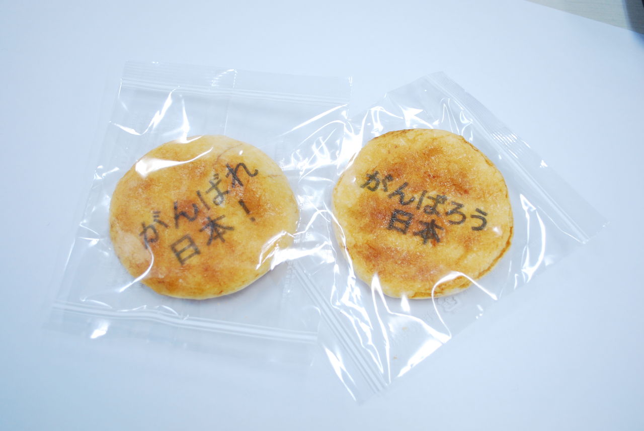 今日、浅草・仲見世にある焼煎餅、雷おこしのお店「壱番屋」さんに伺ってきたところ、こちらのお店では震災の復興を祈念して、「がんばろう日本」のお煎餅を作り、被災地に届けられたとのこと。
