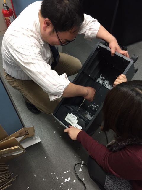 年末進行の、若干パニック状態のなかで、なんと会社のシュレッダーが故障…。