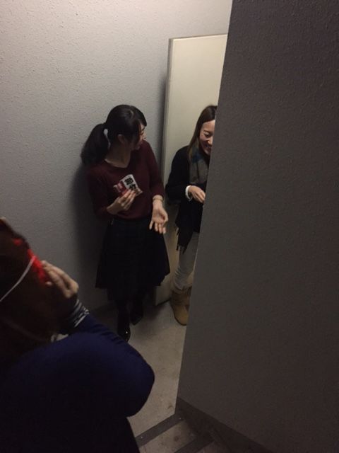 レイレイが50枚くらい写真撮ってLINEアルバムに上げてくれたなかに、なんかわからないんだけど、サオリン(中央)がエア撮影をしている写真がありました。