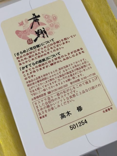 記名入りカステラって初めてです。責任と誇りを感じます。