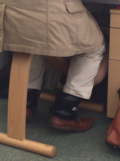 パンツの裾からチラチラ気になる重石が見えているこの状態で、堂々とご出勤。