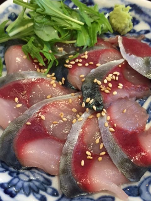 真鯖のお刺身を、まずは醤油で、次はゴマダレで漬けにして、最後はダシで茶漬けに…と「ひつまぶし形式」で堪能するランチ。