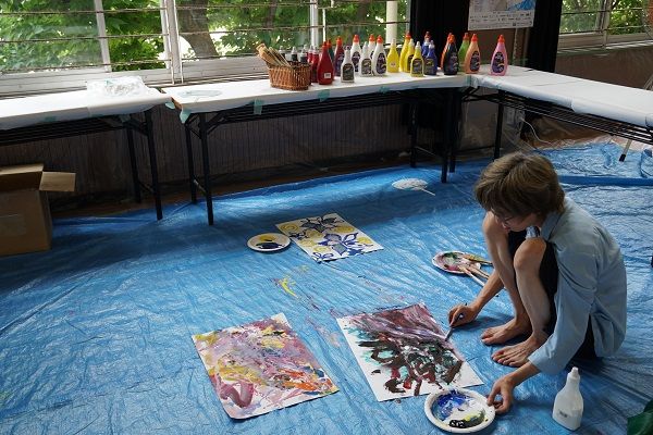 各国を代表する素晴らしいアーティストたちが、体育館で自由に作品を描いているのです。