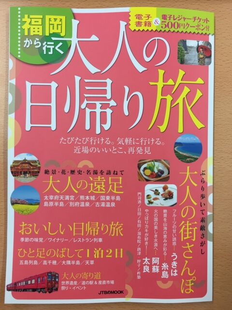 九州王国編集部が編集した「福岡から行く 大人の日帰り旅」(JTBパブリッシング・税別900円)が発売されます。