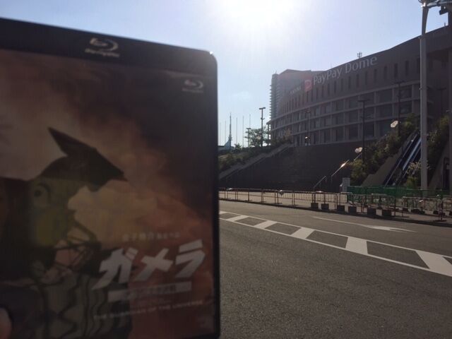 ガメラのDVDを持って、ひたすらドーム周りをぐるぐる回りながら撮影する不審者1名。
