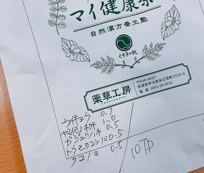 こちらのお店は、個々に体調や悩みを問診してくれ、その人に合った漢方茶をブレンドしてくれるそうです。ヤナッチが受けた処方はこちら