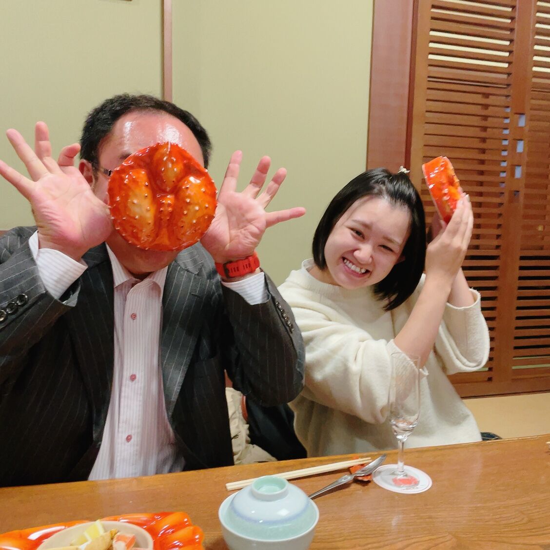 ヤナッチはかにの甲羅から顔がはみ出なくなったアピールです。すごいやん。小顔やん。(棒読み)