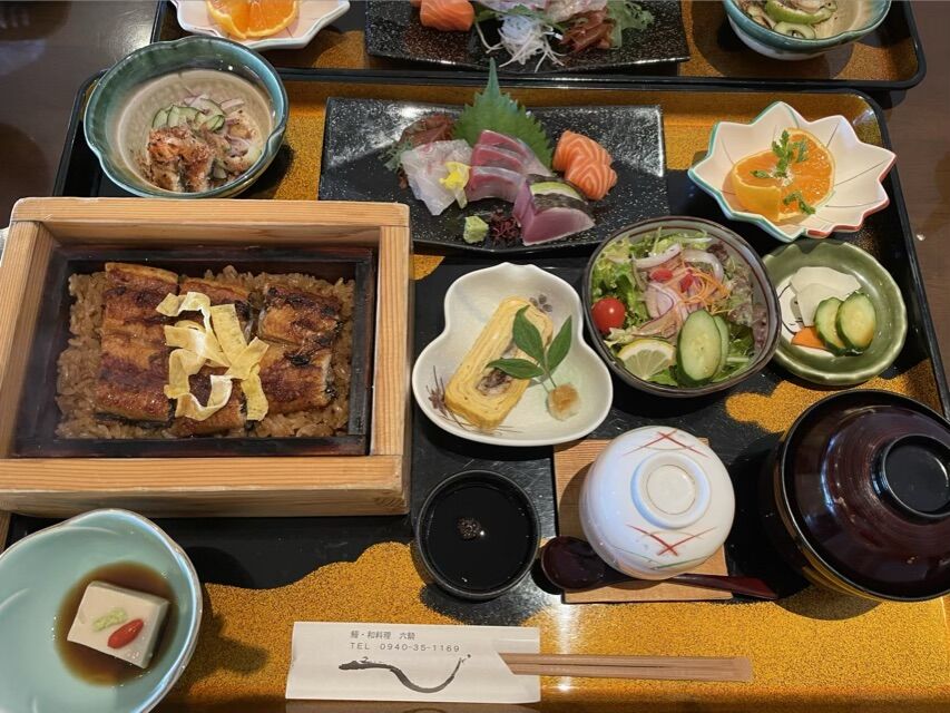 しかし遠くても、車を飛ばす価値ありー!!見てください、この豪華な御膳!ご飯にタレがしみしみのせいろ蒸し、う巻き、うざく、刺身盛り合わせ、サラダ、茶わん蒸し、肝吸い、香の物、フルーツ。豪華すぎません?しかもなんと、米まで手作りなのです!どこまでもこだわりまくるーー