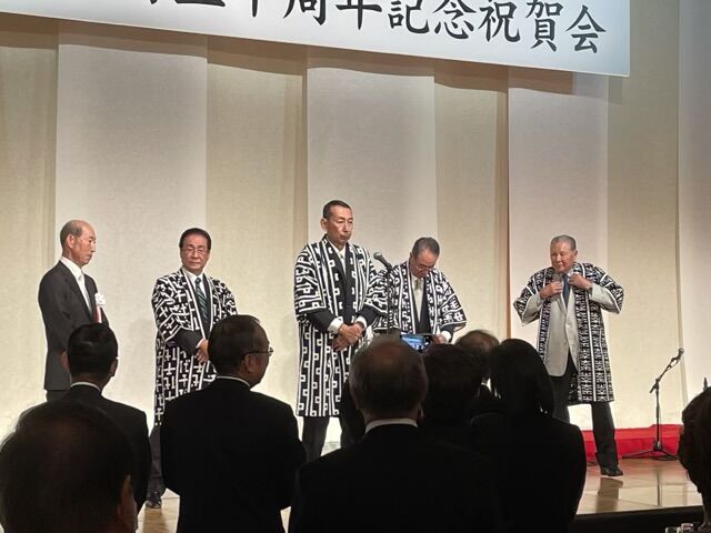 ということで、博多の重鎮たちが一堂に揃った、非常に豪華絢爛な祝賀会でした。これだけの人を集められるのは、さすが「吉塚うなぎ屋」さん。150年のタスキを、次の200年、300年に繋いでいくよう全社員で取り組んでいるという話があり、老舗の暖簾を守る重圧とご努力をひしひしと感じました。