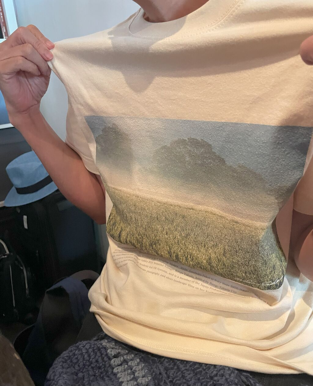 なんと、九州王国の表紙を手がけてくださる、清家道子先生の作品をモチーフにしたTシャツでした。思わず隣から写真撮らせてもらったりしちゃったり(笑)。生成りの良質なコットンに、清家先生が撮った大分の風景を素敵な感じで載せています。(紺、黒、ホワイトなどもあり)