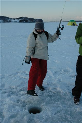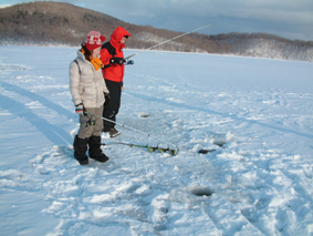 凍った湖面に穴を開けて釣り糸を垂らす、アレです。