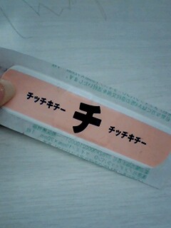 置かれていた時期は、話題的にはこのネタがオンタイムの頃だったので、どこかでいち早く仕入れてきたのでしょう。ちょうど親指にぐるりと巻くとぴったり位置に「チ」がくる絆創膏です。