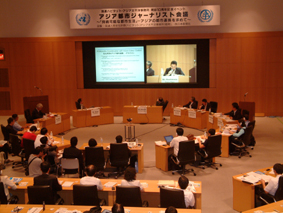 この位置です。(座っていた席より撮影)この円形に集っている人たちが「アジア都市ジャーナリスト」です。