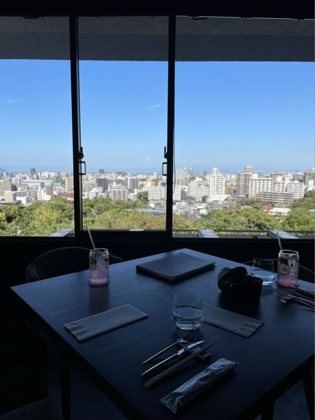 なにより特筆すべきは、この景色ですね!広報の方に「こんな角度で福岡を見たことないです!」って言ったら、「そうでしょ。福岡で一番の景色だと思っています」と自信を見せられていました。納得。緑の奥に町が広がり、その先に海と空。ここから見える福岡は、ものすごく美しいです。これは夜景も相当きれいだろうなー。